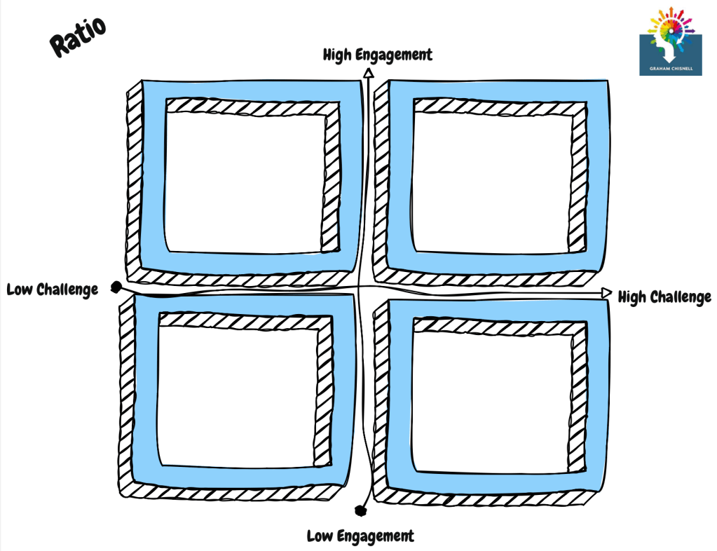 You can use the ratio grid below to monitor the quality of education. Select your lowest performing students in class and place them on the ratio quartile that matches their level of engagement and level of challenge. You. can then compare this with students who perform exceptionally well. This provides a simple but effective focus for your monitoring activity and could help in unpacking any potential blocks to learning for your students.