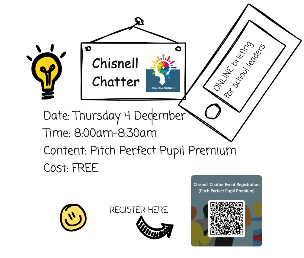 The next Chisnell Chatter Live session will take place in cyberspace on December 4 2026 and will focus on Pitch Perfect Pupil Premium (I do love a bit of alliteration). With the focus on disadvantaged pupils in the Ofsted framework, this is an essential listen to all school leaders.